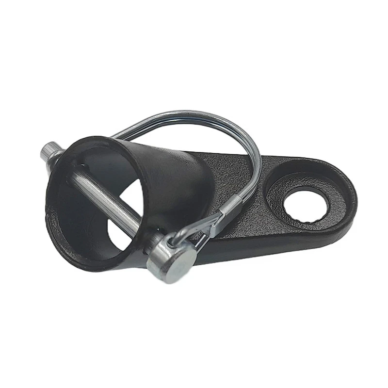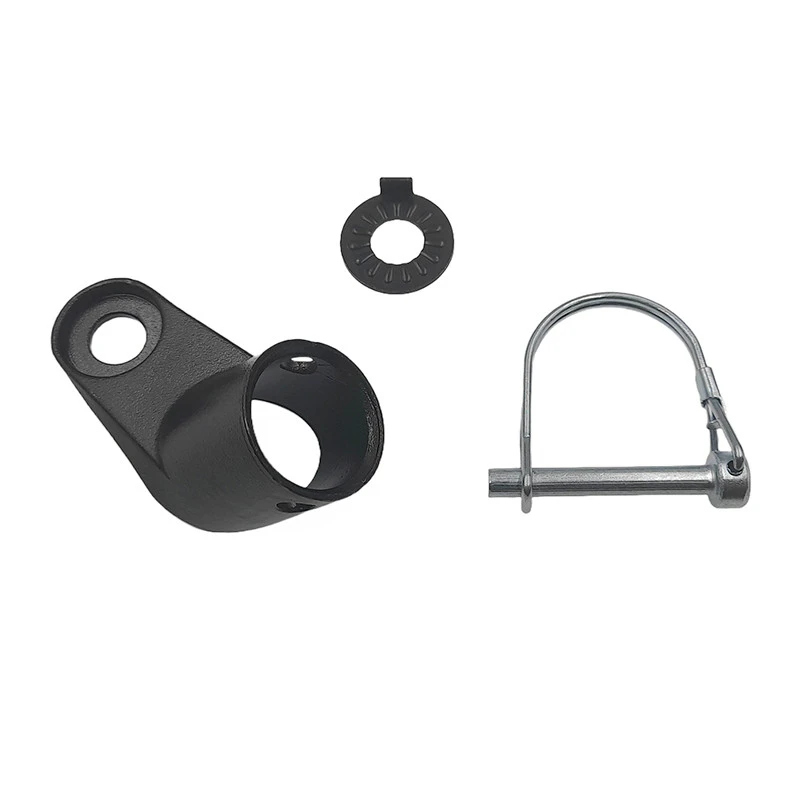 Cette fixation en acier avec angle à 45 degrés permet d’adapter avec précision la fixation du bras de remorque avec la goupille et la rondelle fourni.