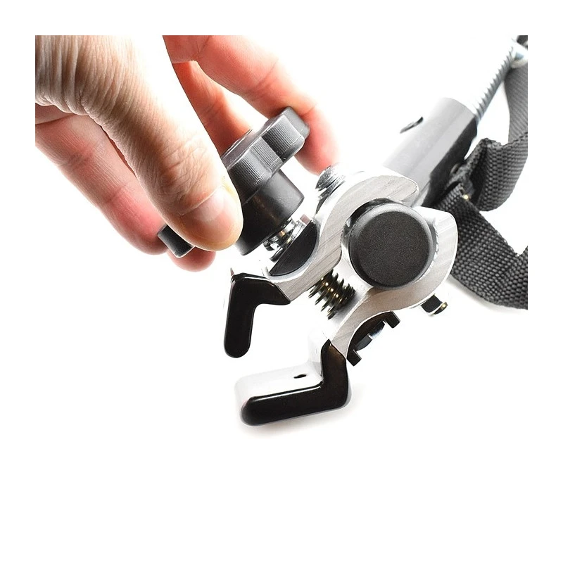 Ce bout de bras de remorque vélo avec mâchoire sur base du cadre du vélo est compatible avec les bras de remorque venant d’Asie ou sans marque. La mâchoire de cette fixation viens prendre le hauban en le serrant avec la molette noire prévue à cet effet.