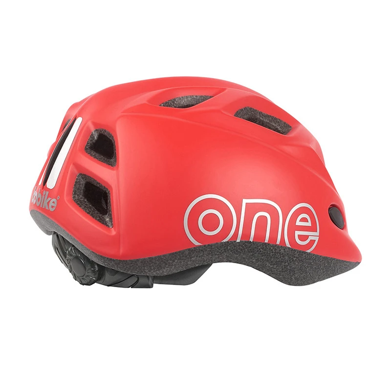 Le casque rouge One de la marque Bobike est parfaitement adapté à la sécurité et au confort de l’enfant lorsqu’il est installé dans un siège ou une remorque vélo.