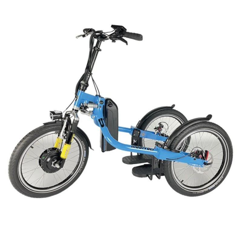 InventĂ© et dĂ©veloppĂ© par Olivier Joux et fabriquĂ© en France, le VR 450 est un tricycle articulĂ© 100 % Ă©lectrique, sans selle, qui s’utilise debout. Bien plus facile que le vĂ©lo et bien plus stable qu’une trottinette, il suffit de quelques minutes pour le prendre en main. Un vĂ©lo debout adaptĂ© pour tous, quelle que soit la tenue vestimentaire, en talon, en costume ou encore en short !