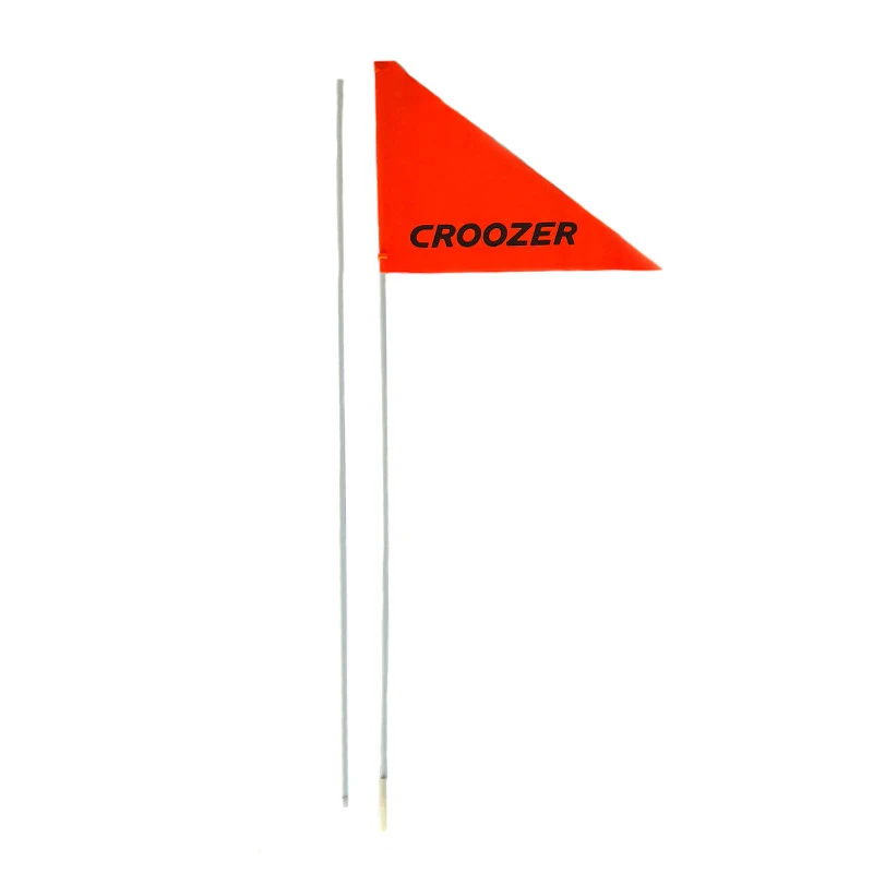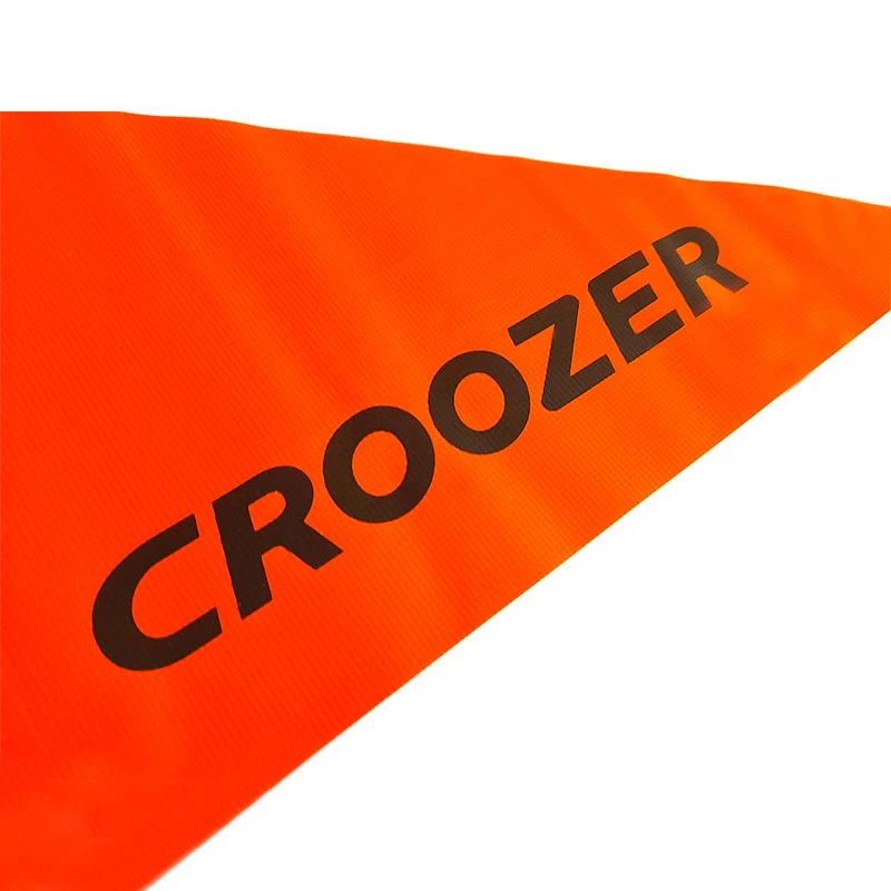 Drapeau de sécurité avec fanion orange sérigraphié à fixer sur les remorques à vélo de la marque Croozer.