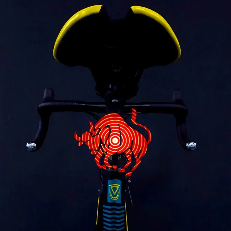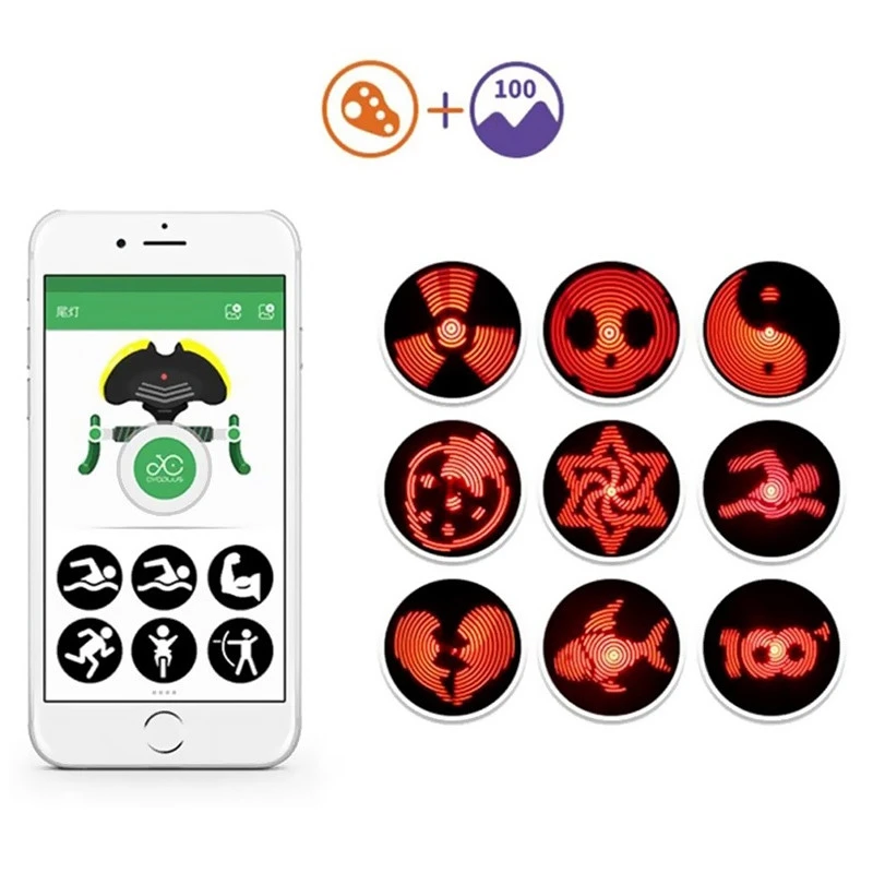Ce feu arrière intélligent rechargeable en USB et éditable par connexion bluetooth vous permet de vous manifestez dans l’obscurité et dêtre parfaitement visible dans la pénombre tout en étant original.