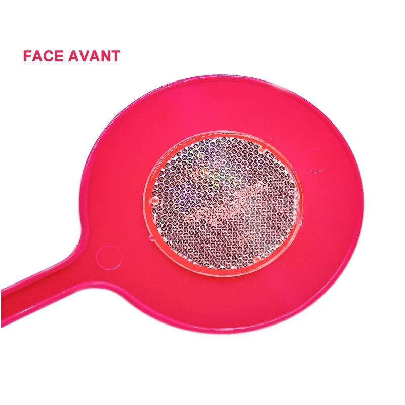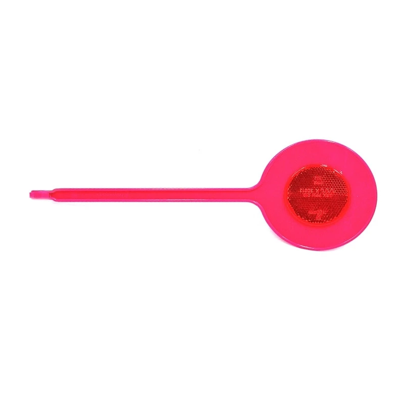 Fabriqué en plastique flexible de couleur rose pour les dames se déplaçant vélo, cet accessoire de sécurité pour bicyclette dispose de 2 faces avec un réflecteur blanc pour l’avant et un second de couleur rouge pour l’arrière.