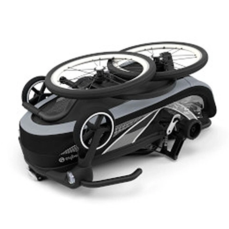 Si vous souhaitez utiliser de la Zeno Bike comme remorque vélo, les deux roues avant se retirent du bout des doigts et se rangent dans des endroits spécialement prévus pour qu’il ne gêne pas ou ne soit pas perdu lors du rangement de la remorque.