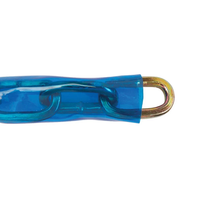 Maillons en acier trempé extrêmement résistant. Gaine PVC résistante aux intempéries. Dimensions des maillons (internes 16 mm x 38 mm) pour utilisation avec des cadenas à grandes anses.