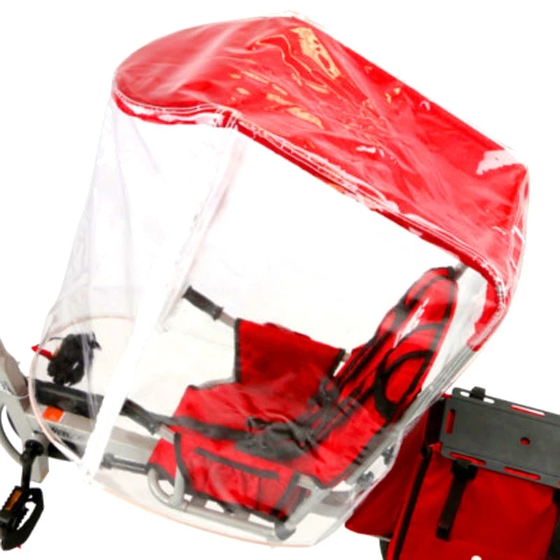 Une fois la bonne saison de retour, la fenêtre avant translucide se remonte et se range par enroulement, ce qui offre à l’enfant un parcours ensoleillée ou une protection contre la pluie et la poussière, pour des kilomètres derrière le vélo suiveur des parents ou grands-parents en toute sécurité.