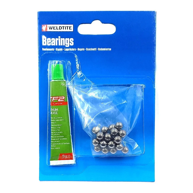 Ce kit constitué de 24 billes en acier cémenté avec tube de graisse lithium haut rendement de la marque Weldtite permet d’entretenir les pièces en rotation présentent sur le boitier de pédalier ou le moyeu de la roue arrière. En complément, nous vous recommandons le kit pour axe de pédalier carré avec cuvettes et roulement à billes.